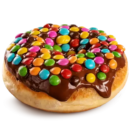 Uma cobertura única de chocolate ao leite com granulado colorido.